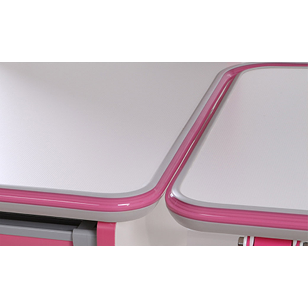 桌麵工藝:進口美耐防火板,采用三層高壓成型工藝,表層與底層均為1.2mm厚點陣防火板,該板會將燈光產生漫反射,光線更柔和、不會聚焦到小朋友的眼球,不會刺激瞳孔,能有效保護眼睛,防止近視。麵板表麵耐摩擦、柔和、易清潔,可供小朋友隨意塗鴉、畫畫,汙漬輕鬆擦拭。 |